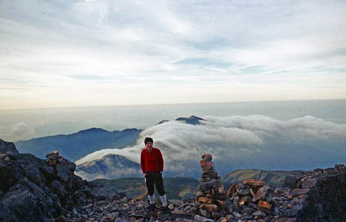 | 2日目の早朝ははまずまずの天気でご来光も見えたようです。 午前5時30分に御前ヶ峰に登る。 |
