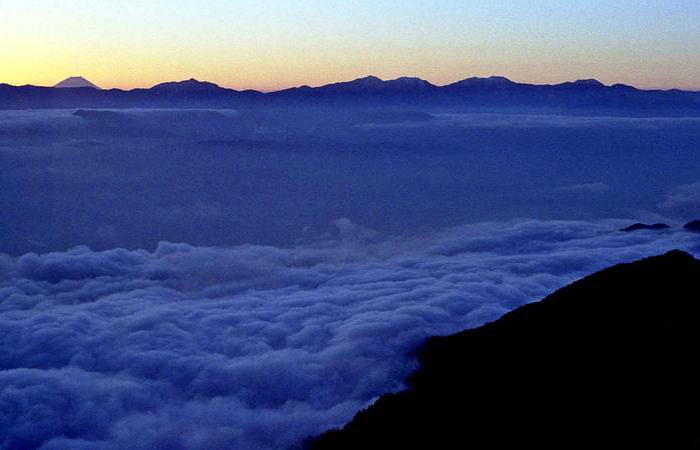 | 伊那前岳の彼方に雲海に浮かぶ八ヶ岳。 |