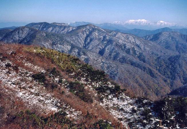 | 左手前には美濃又丸や笹ヶ峰。その向こうに部子山と銀杏峰。 |