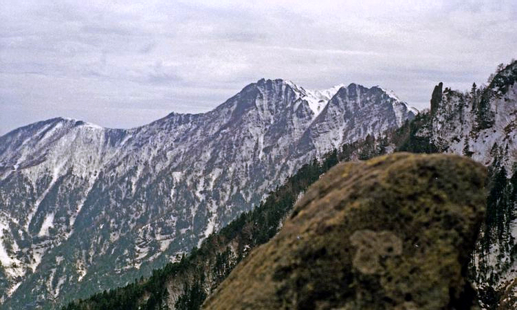 | 赤岳と中岳。 これも撮影場所不明(以下の写真もほとんど不明です)。赤岳鉱泉の手前かな。 |
