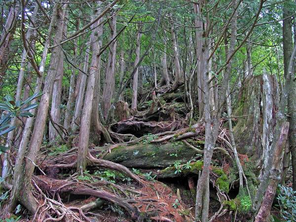 | 鷲の窟から急登して日本岳のコルに着く。ここで一休み。 |