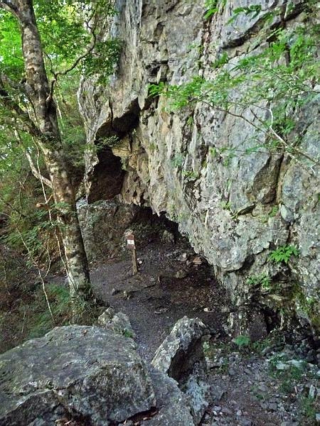 | さらに巻き道を辿って行くと朝日窟に着く。 |