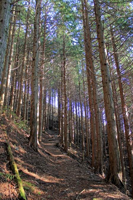 | 針葉樹や落葉樹の中をひたすら登り続ける。 |