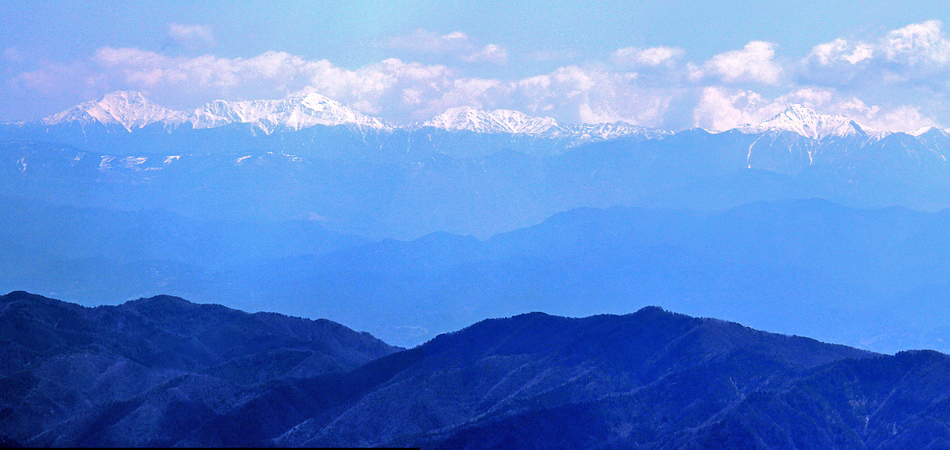 | 1700mピークから南アルプスを望む。以下望遠で撮影。 |