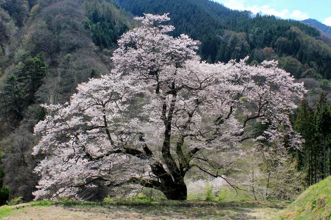 | ”駒つなぎの桜”。 樹齢はいくつなのだろうか。思いがけず見ることができた立派な桜だった。 |