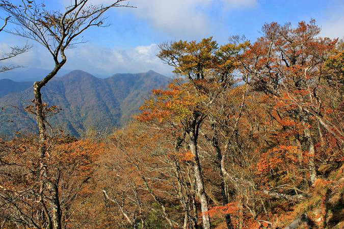 | 桧塚奥峰から桧塚を見る。このあたりも稜線付近の紅葉は終わっている。 |