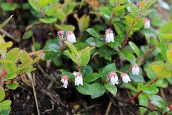 | 道の両側には小さな白い花が沢山咲いていた。 特にゴゼンタチバナは鬼ヶ面山稜線の登山道に沿ってほとんど途切れることなく見ることができた。 |