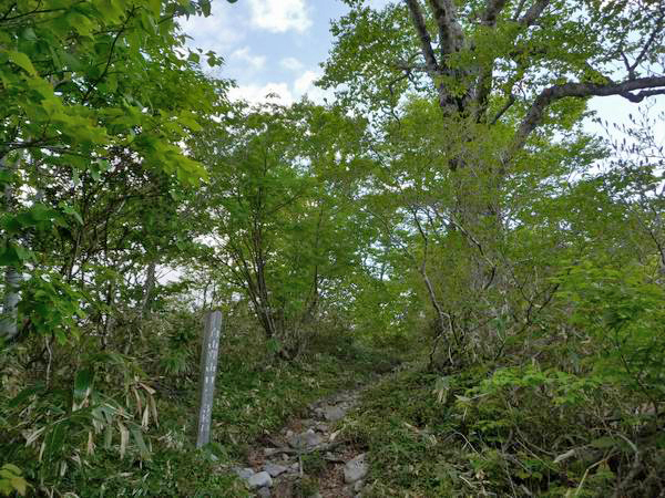 | 一ノ峰との鞍部には6km地点の道標が立っている。 |