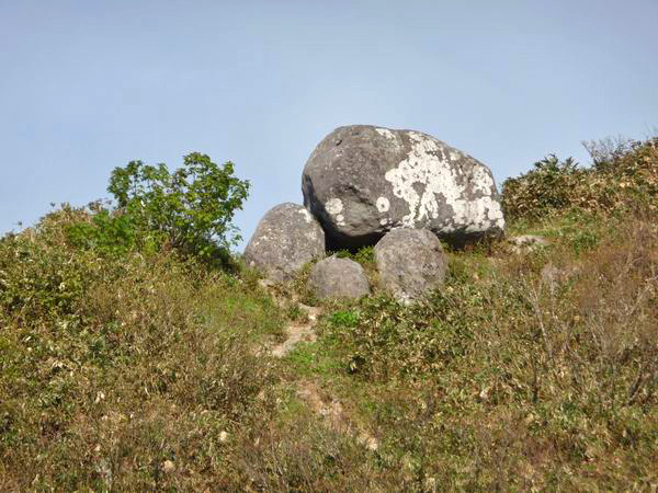 | 不思議な斑点のある母御石。ここを過ぎるとあと少しで銚子ヶ峰の一角に出る。 |