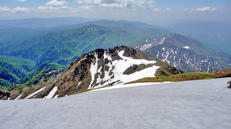 | 北の方とは違って南の空は晴れており、願教寺山から野伏ヶ岳まで続く白山の支脈もよく見えた。 |
