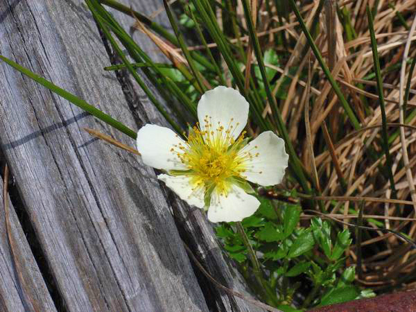 | 田代山から下ってゆくと道の脇に小さな白い花が目立つようになる。 初めてみるが、多分この山の名物の一つであるオサバグサだろう。 |