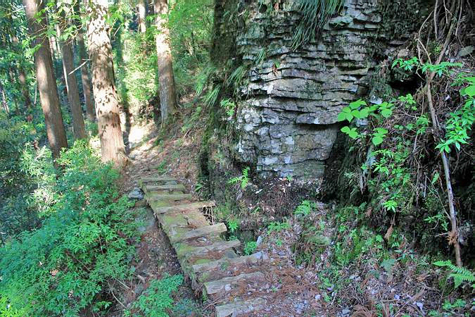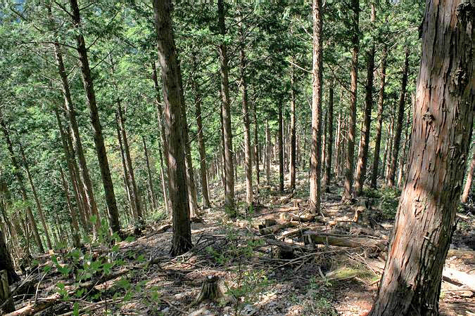 | 尾根に乗るまでは植林の中の100mほどのつづら折りの登りです。 |