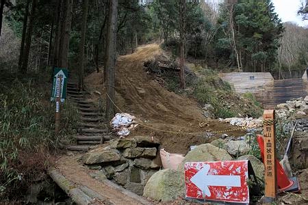 最後の石仏から少し行くと道路の終点となる。その先は何かの工事の最中だった。 |