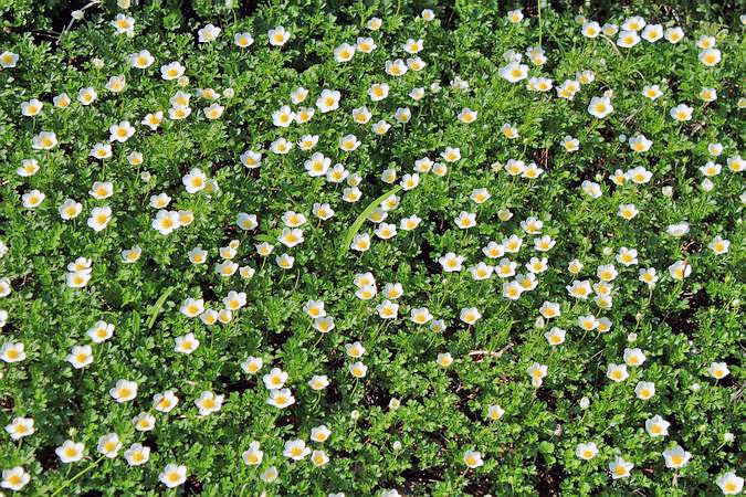 | ミツバオウレン。 この花もマイヅルソウと同じように登山道脇にずっと咲き続いていました。 |