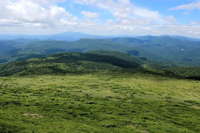 | 湯森山を振り返る。 眼下に熊見平の湿原が広がる。 (画像の上にマウスポインターを置くと拡大されます) |