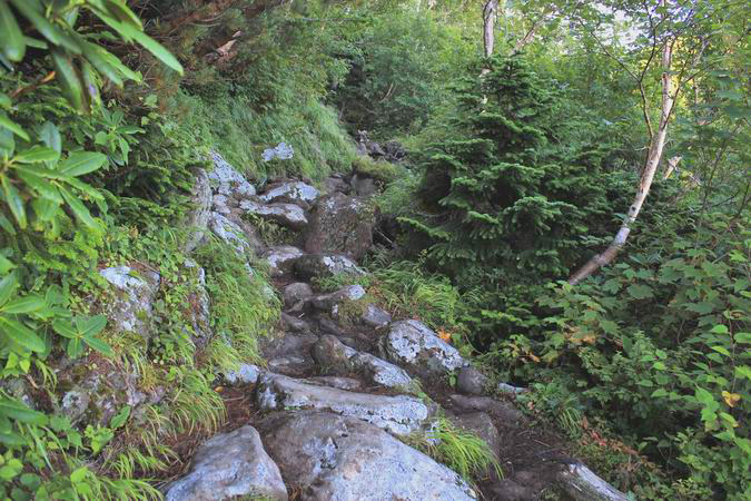 | 人の気配のない道を下って行きます。しかし途中で数組の登山者とすれ違った。 |