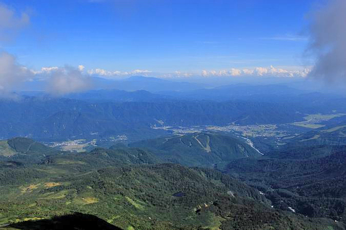| 稜線は朝日岳からさらに北へ、日本海まで続いて行く。 |