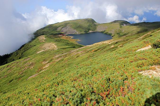 | 雪倉岳方面の眺め。稜線付近の雲が増えてきたようです。 |