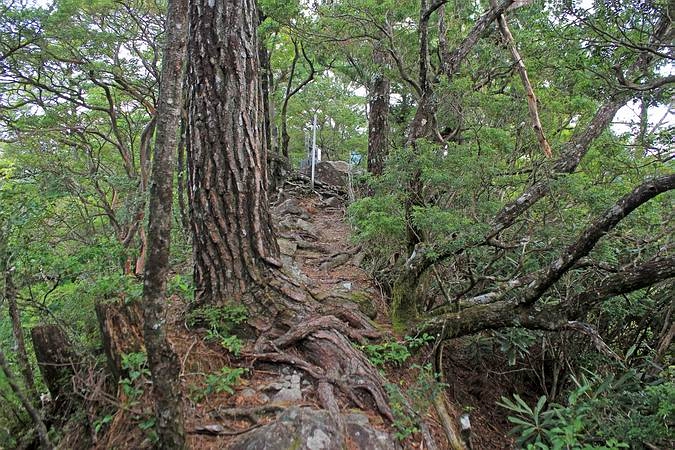 | 標高差は50mほどだが、またまたロープが張られた急登です。 |