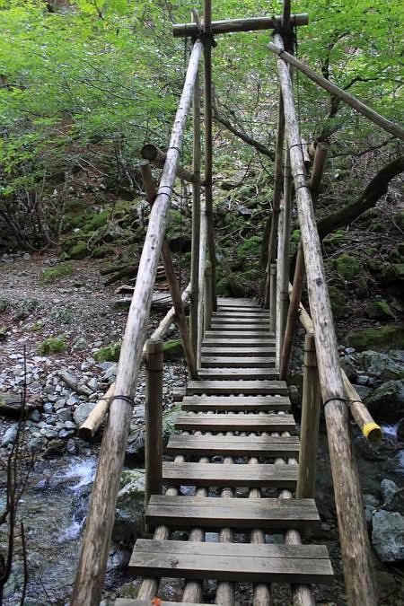 | 小坪谷の流れに架かる橋まで戻ってきてホッと一息つく。 河原で手と顔を洗って少しサッパリしました。 |