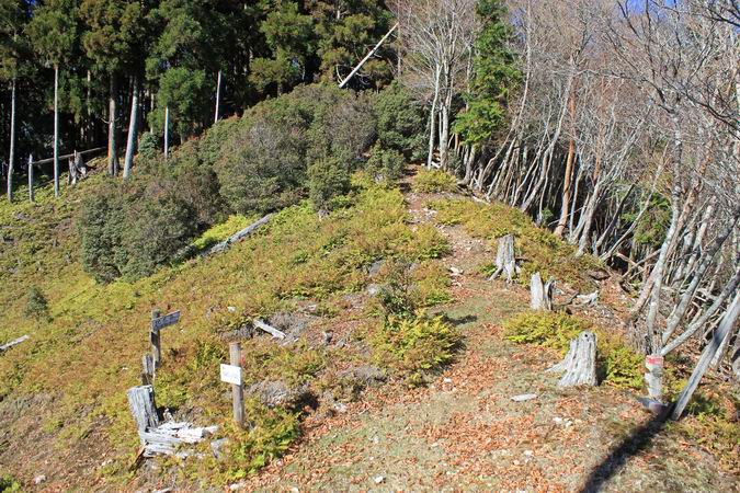| 下ったところは逓信道(笠捨山巻き道)分岐点です。 |
