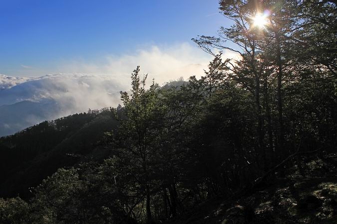 | 駐車地から10分足らずで標高1500mほどの小さなピークに着きました。 ここで大峰山脈と台高山脈を繋ぐ稜線に乗ったことになります。あとは三津河落山までこの稜線を辿って行きます。 |