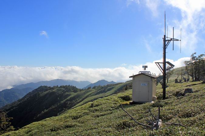| 山頂は木々に囲まれていて展望はあまりありません。 台高山脈の北部が少し見えています。 |