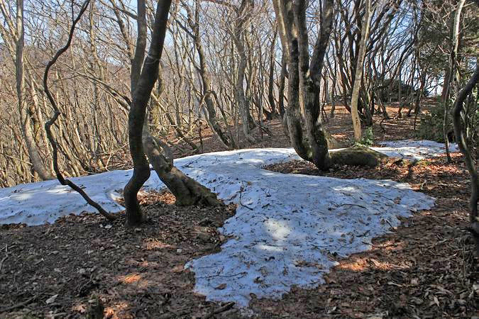 | このピークから先には断続的に福寿草の群落が見られた。 |