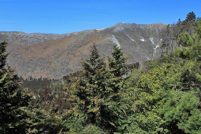 | 金糞岳の奥に見える雪山は笹ヶ峰方面かな。よく分かりません。 |
