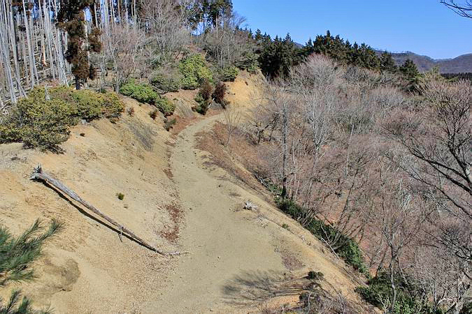 | P590から緩く下って行きます。前方に近江展望台が見える。 |