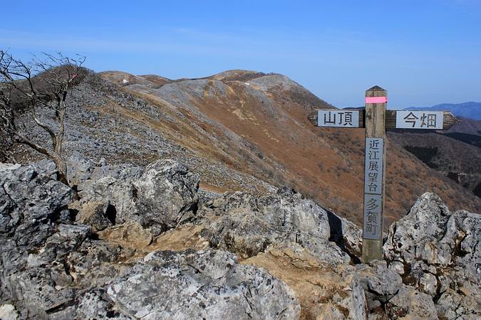 | 右手には三角点のある霊仙山。 |