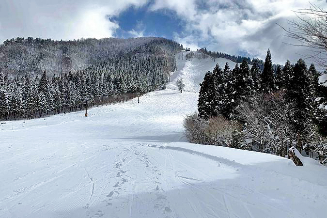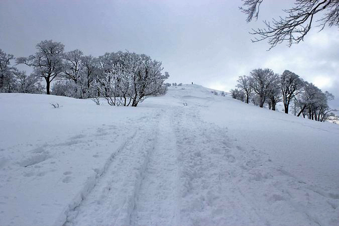 | 踏み抜きを繰り返しながら午後1時25分にゲレンデに降りてきました。 氷ノ山まで行けずに残念な結果となったが、無理をせず次の機会を気長に待つことにしよう。 |