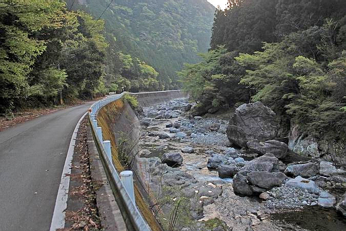 | 蓮川に沿って車道を戻って行きます。 池木屋山を源流とする蓮川は、やがて櫛田川と合流して松阪で伊勢湾に流れ込みます。 |