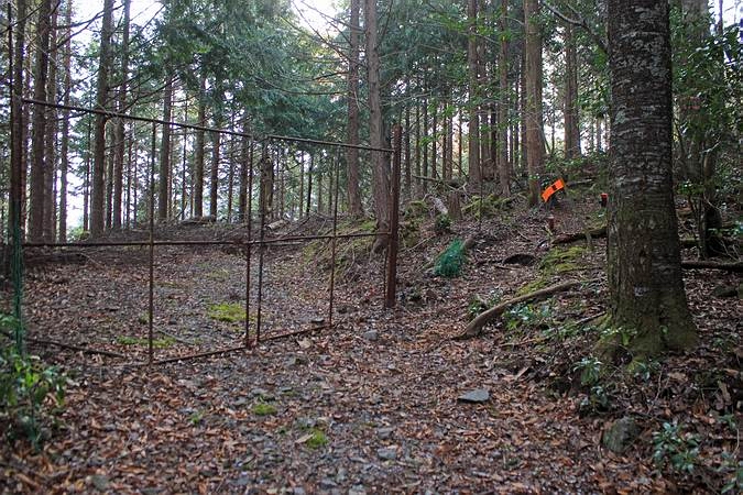 | 途中で立ち入り禁止のロープが張られてあり、そこで少し左に折れてさらに下っていきます。 かなり急な下りです。 |