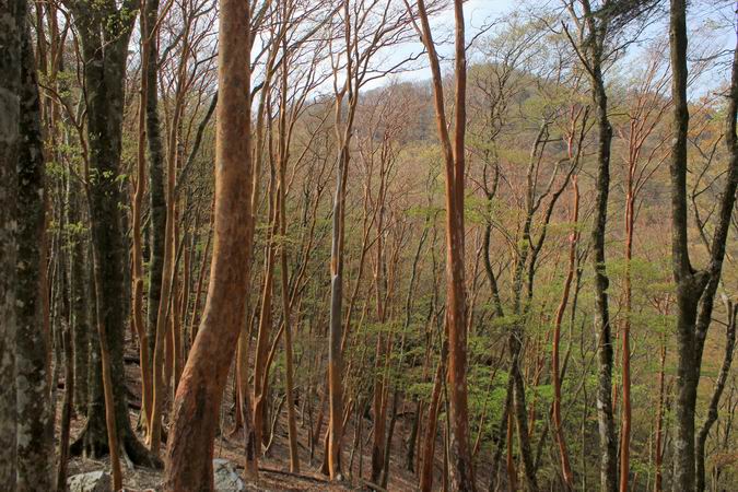 | そのあとはこの山域の特徴でもあるヒメシャラの幼木帯。 |