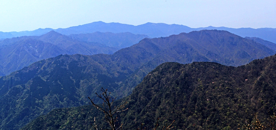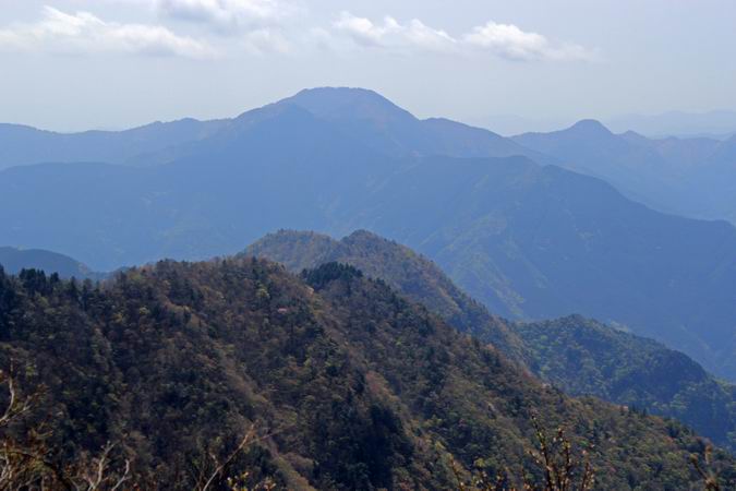 | 遠くに日出ヶ岳と三津河落山。 日出ヶ岳の左手前にウグイ谷高。右手前の大きな山は大杉国見山。 ウグイ谷高は登ってみたい未踏の山だが、果たしてどうなるか。 |