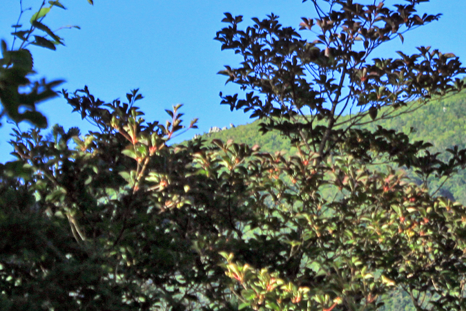 | 馬返しから先は樹相が変わってくる。今の季節では葉が茂って稜線は見えない。 |