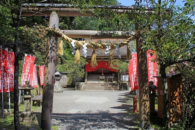 | その先には三柱神社。別名は稲荷社。 祭神の中の倉稲魂神(うがのみたまのかみ)は伏見稲荷大社の神様として知られている。 |