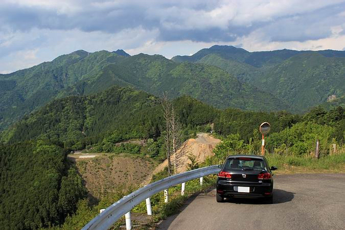| 帰りの途中、車道から眺めた地蔵岳や笠捨山。 帰りは国道425号経由で国道168号に出てから往路を戻りました。 大きな渋滞はなく帰宅は午後7時でした。 |