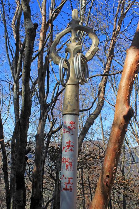 | ここは今日の行程の中で最も標高が高く、二等三角点もあるところですが、 残念ながら開けた展望はありませんでした。 少し休憩してから先に進みます。 |