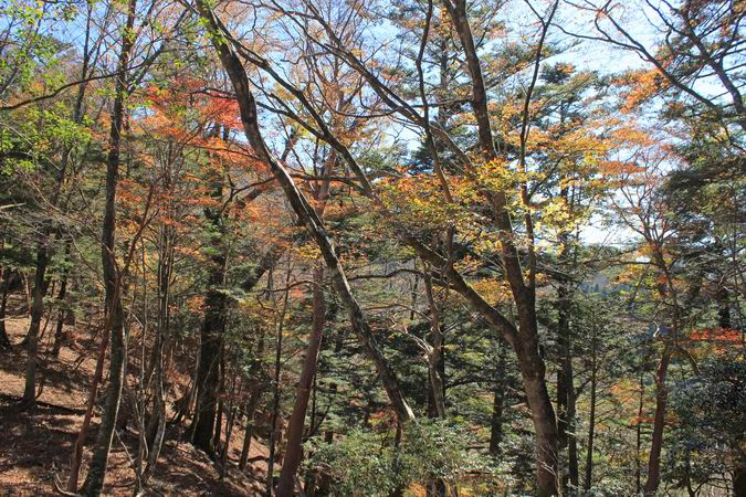 | 行仙岳を振り返る。 このあたりは標高1100mほどのところで、まだ紅葉は残っていました。 |