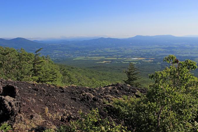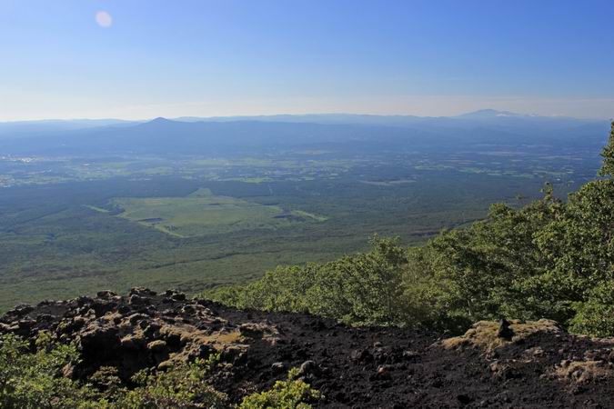 | 傍らに踏み跡があったので辿って見ると正面に溶岩流が一望できるところに出ました。 |