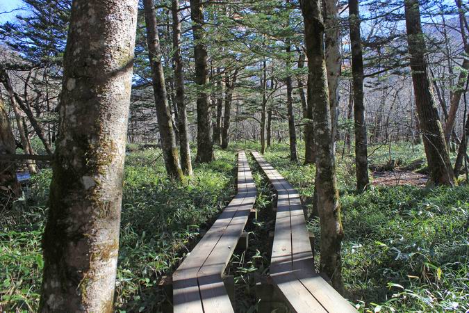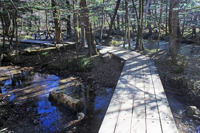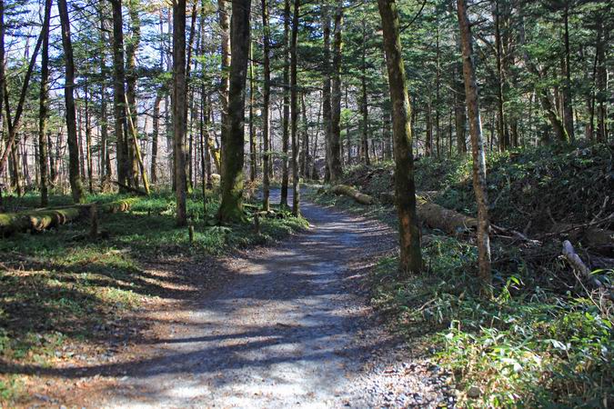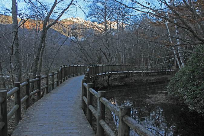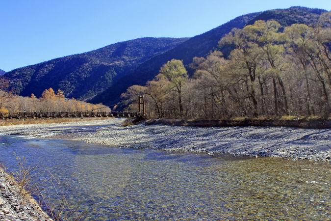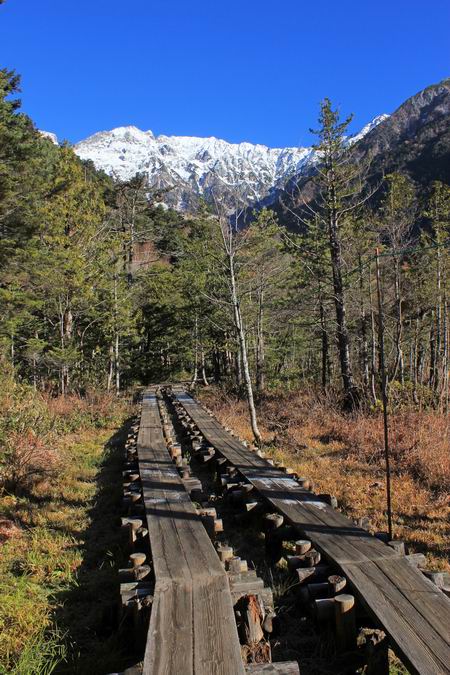 | 河童橋から梓川右岸を明神池に向かう。 |