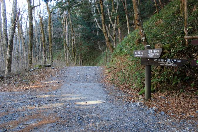 | 右に徳本峠への道が分かれる。 2014年11月にここから霞沢岳へ向かったことが昨日のことのように・・・。 |