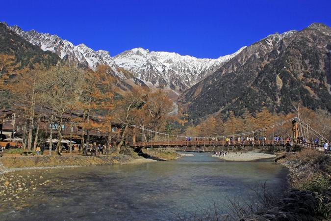 | 午前8時20分に河童橋着。大勢の観光客が絶景を撮っていました。 |