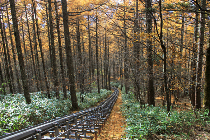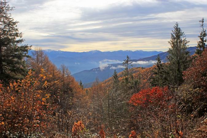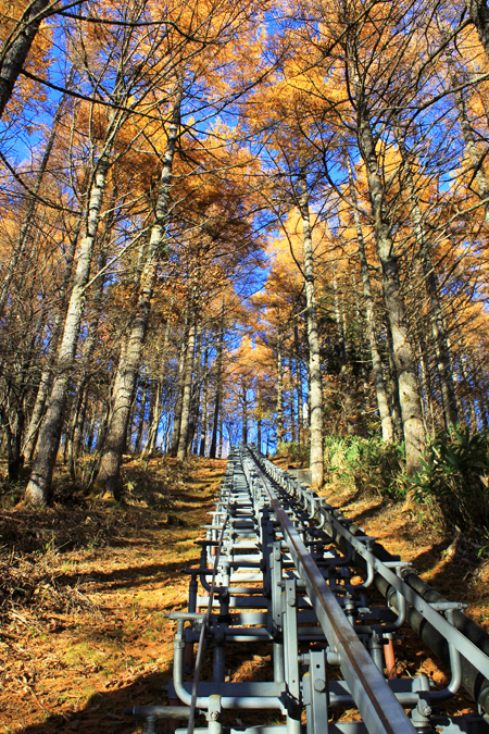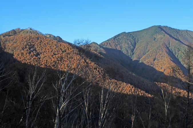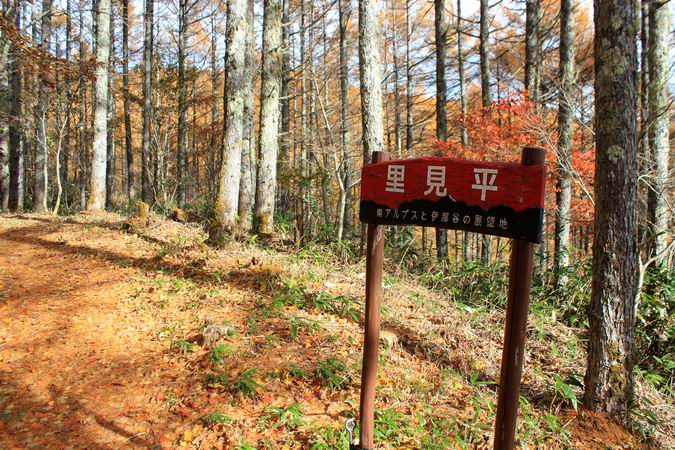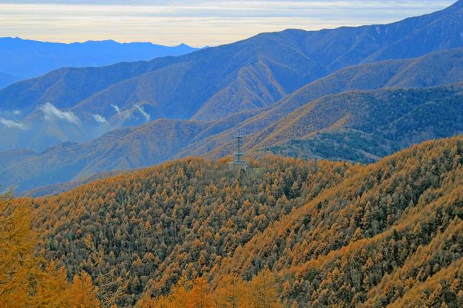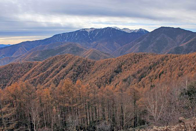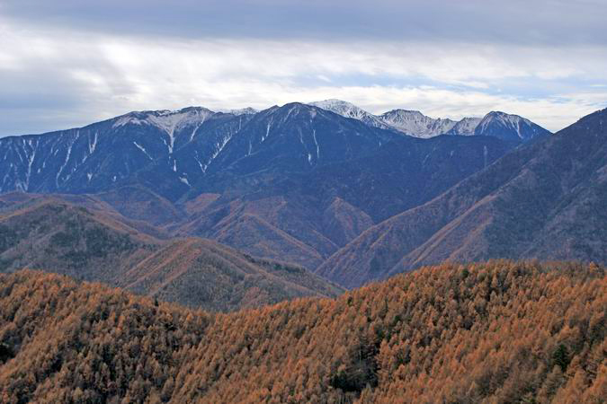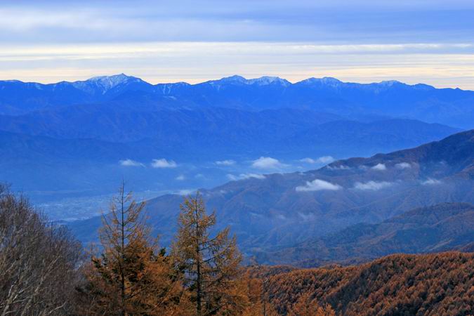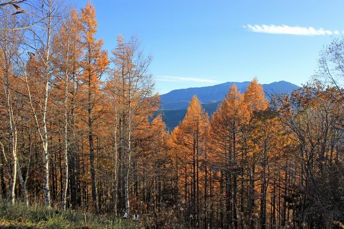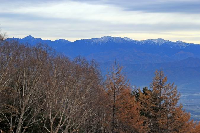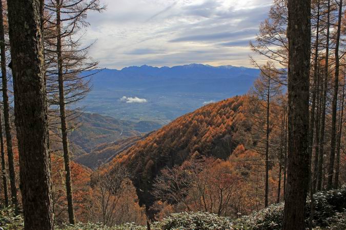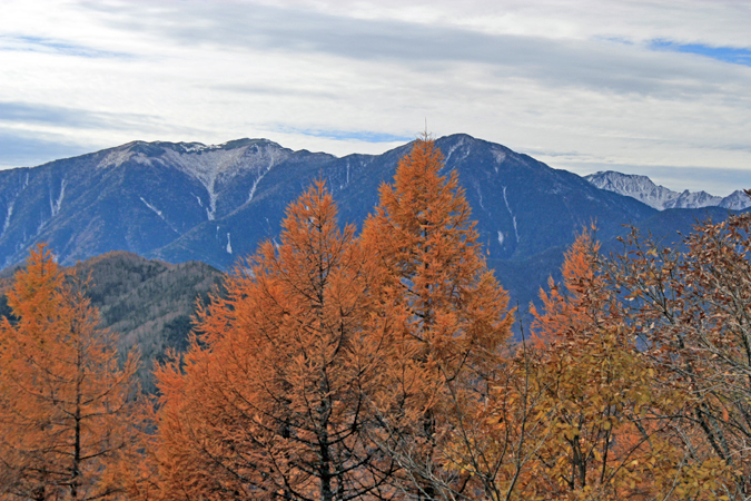 | 振り返れば中央アルプスと黄葉の木々。 |