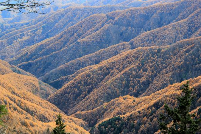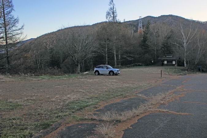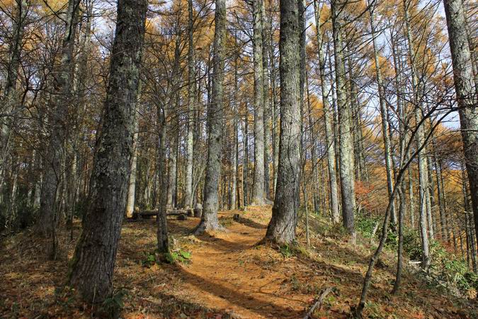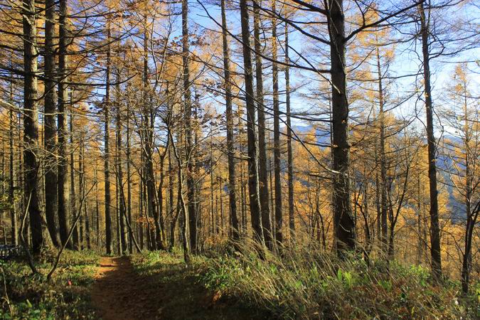 | 当然、車は私の一台のみでした。このあと着替えをして宿のある伊奈インター方面に向かいました。 急遽予定を変更した今日の経ヶ岳行でしたが、このルートは最後の急登を除いてあまり厳しい登りもなく 中央や南アルプスの眺めも良く、また折からの黄葉も綺麗で全体的に変化に富んだいい道でした。 初夏にはササユリを始めとした花々が咲き乱れるようで機会があれば来てみたいと思います。 しかし何といっても、熊にも出会わず無事に戻って来れたことが一番でした。 |