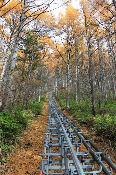 | アンテナピークから下る途中でモノレールと黄葉を鑑賞 |