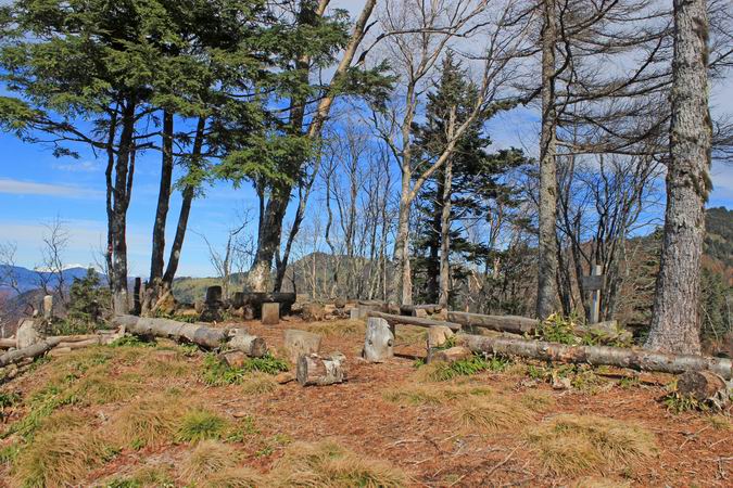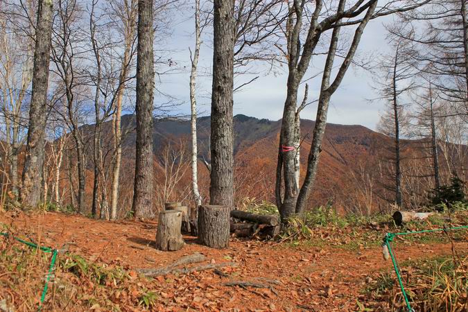 | 10時40分に北沢山山頂に着きました。ここが登山口と山頂との中間点のようです。 正面に目指す経ヶ岳。 |