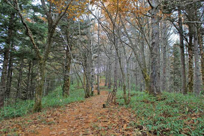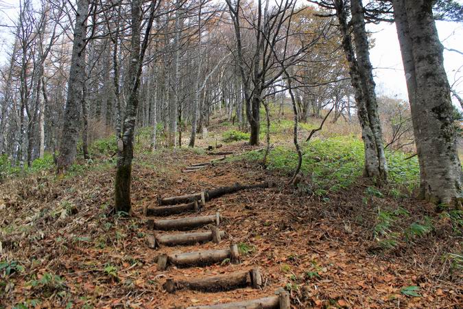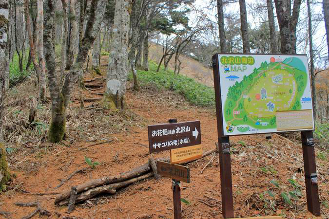 | 午前10時25分。北沢山への登りが始まる。標高差は70mほど。 直登コースとお花畑コースがあるが、花は既に終わっているので直登コースを行くことに。 |